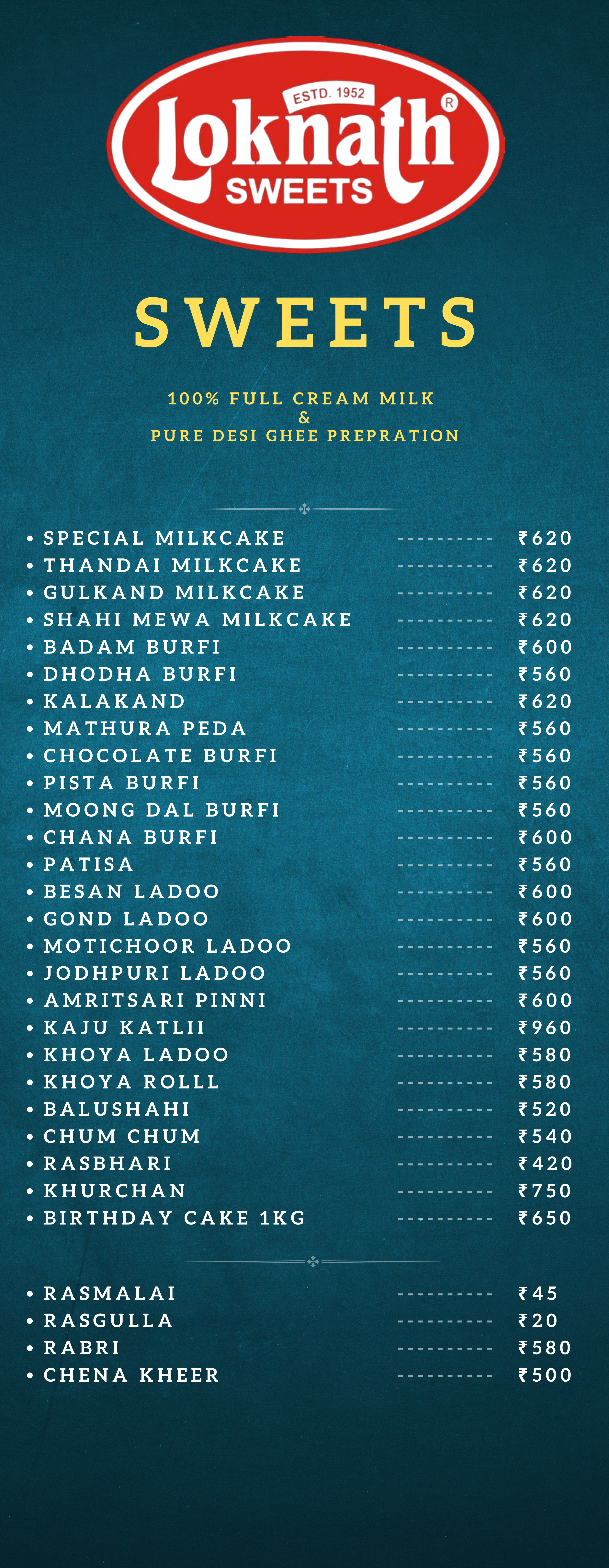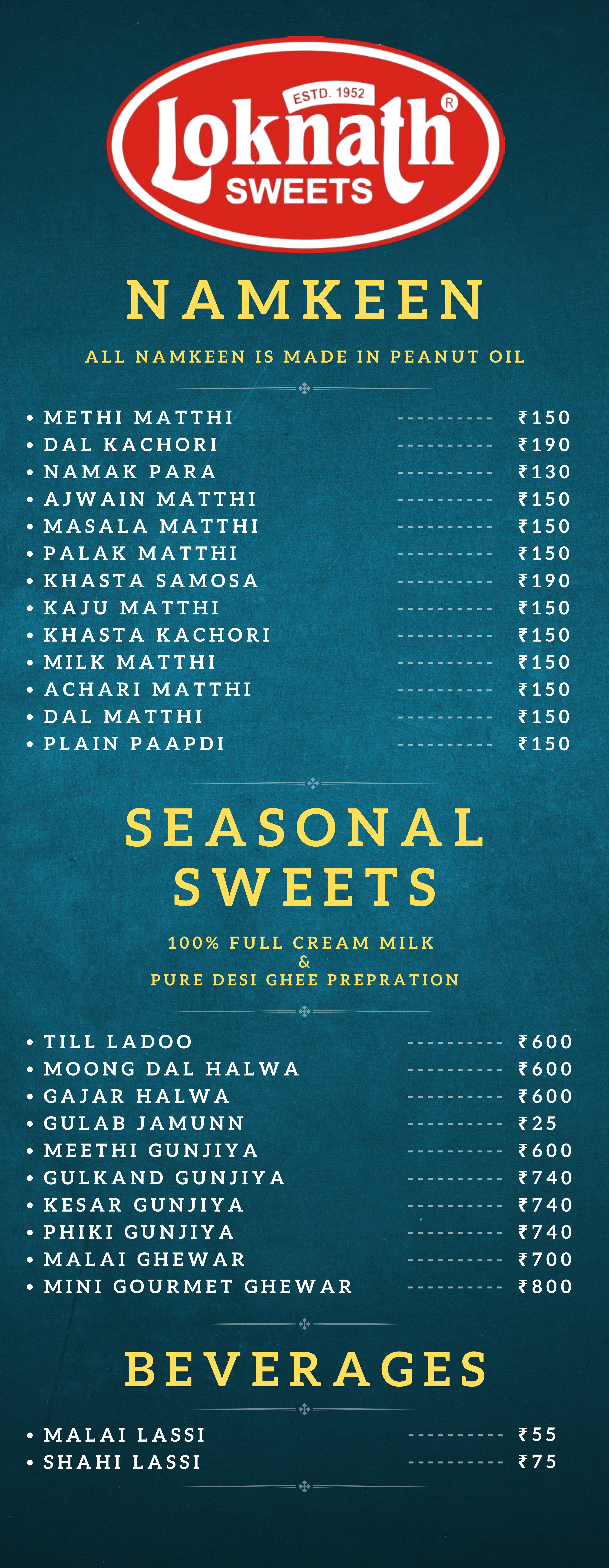 LOKNATH SWEETS OFFLINE MENU